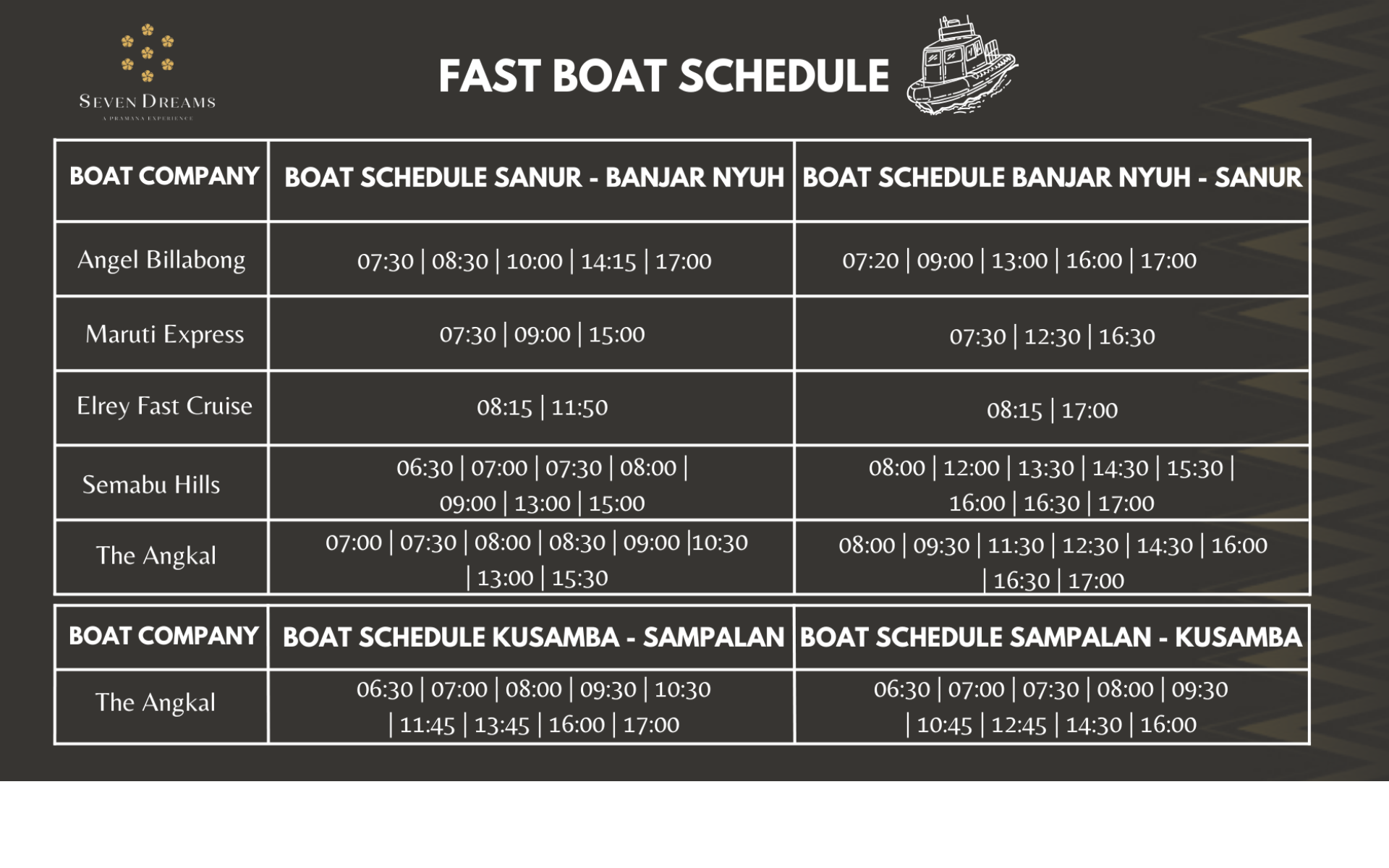 • Choose destination to/from Sanur,Kusamba or Banjar Nyuh,Sampalan Harbor